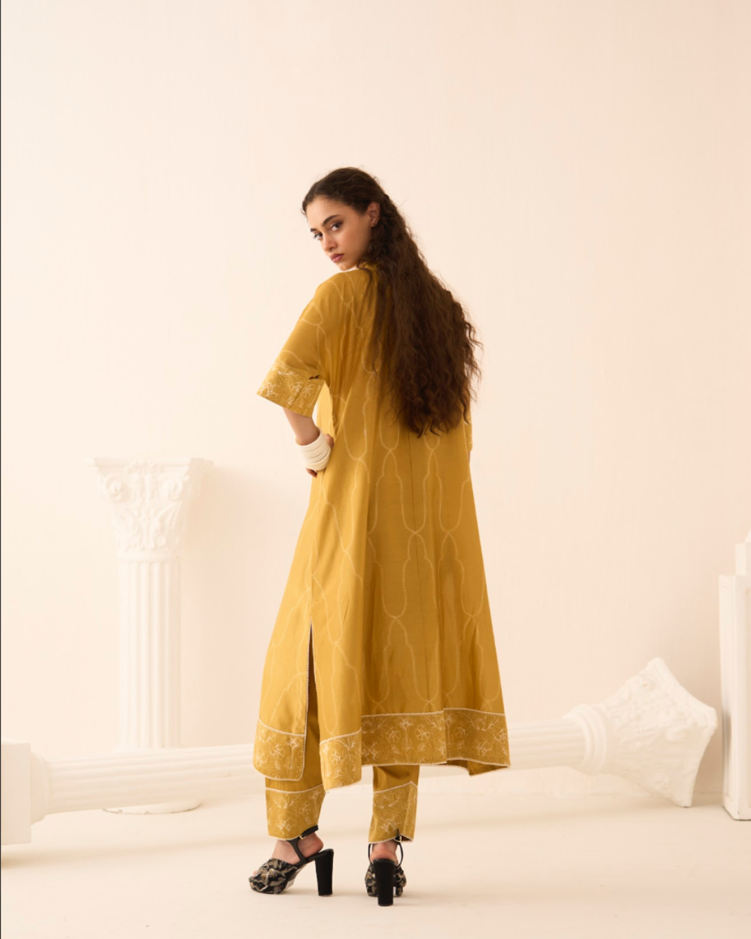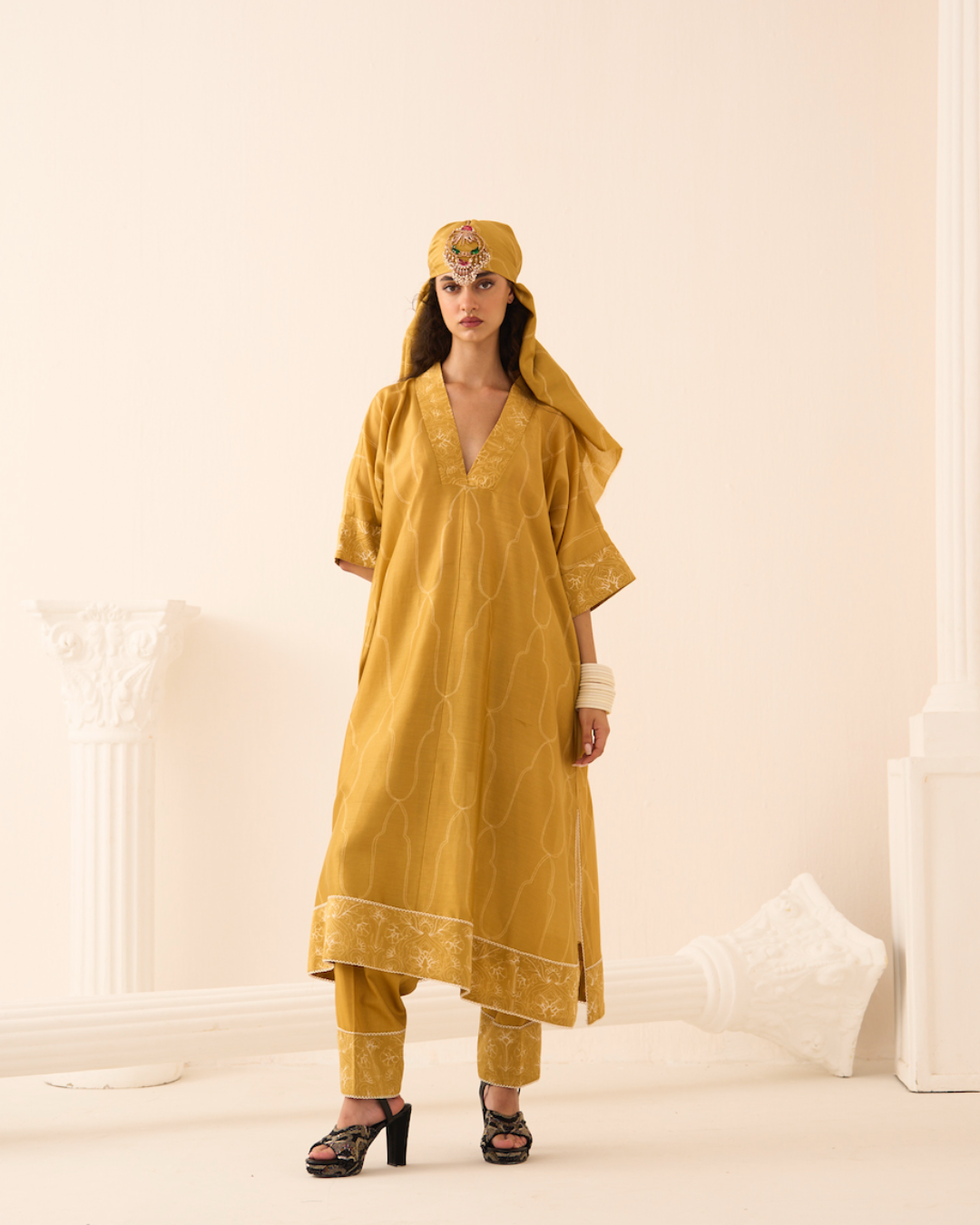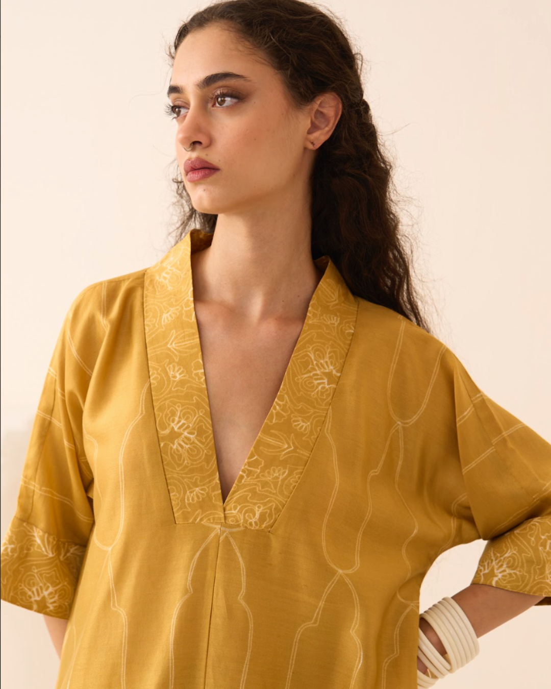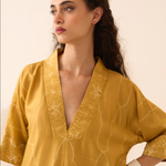 Kurta - Yellow Chanderi Nui Shibori kaftan