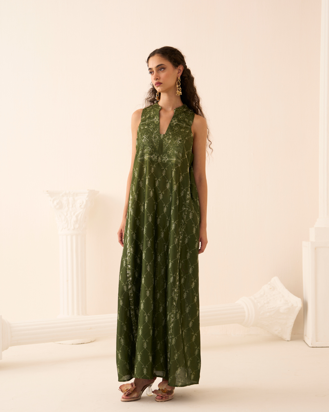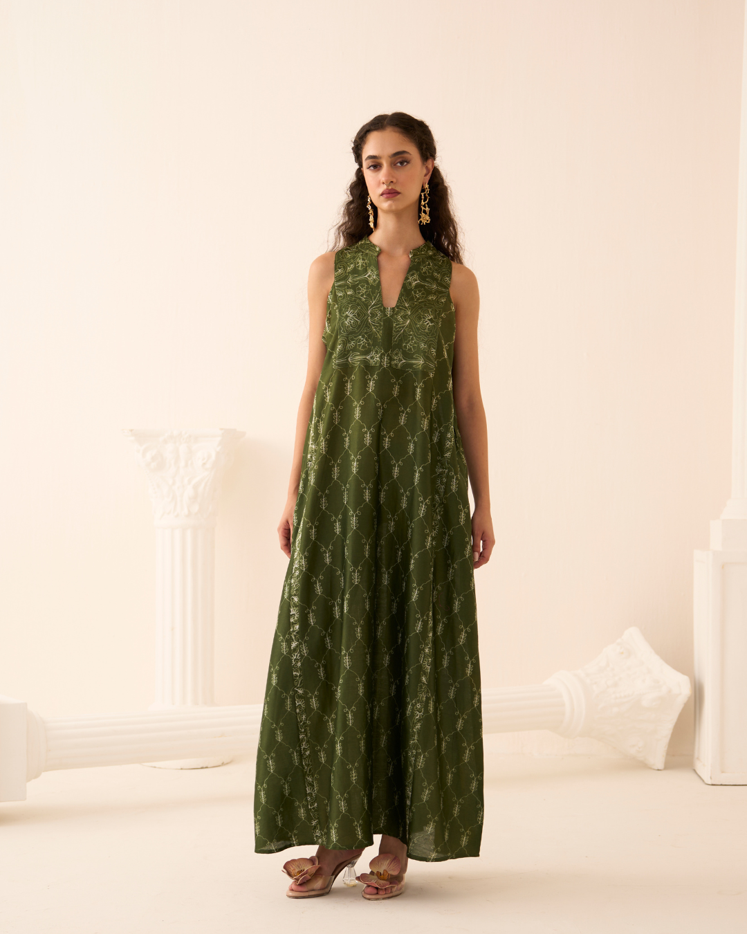 Top - Green Chanderi Nui Shibori Dress